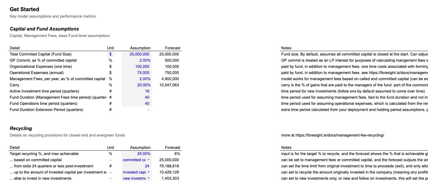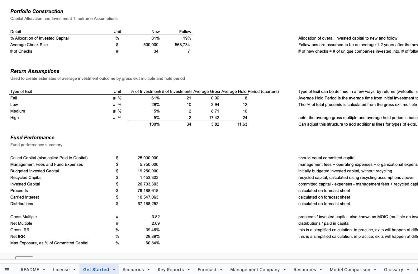- Need high-level fund economics without quarterly pacing? Use the Fund Economics Tool.