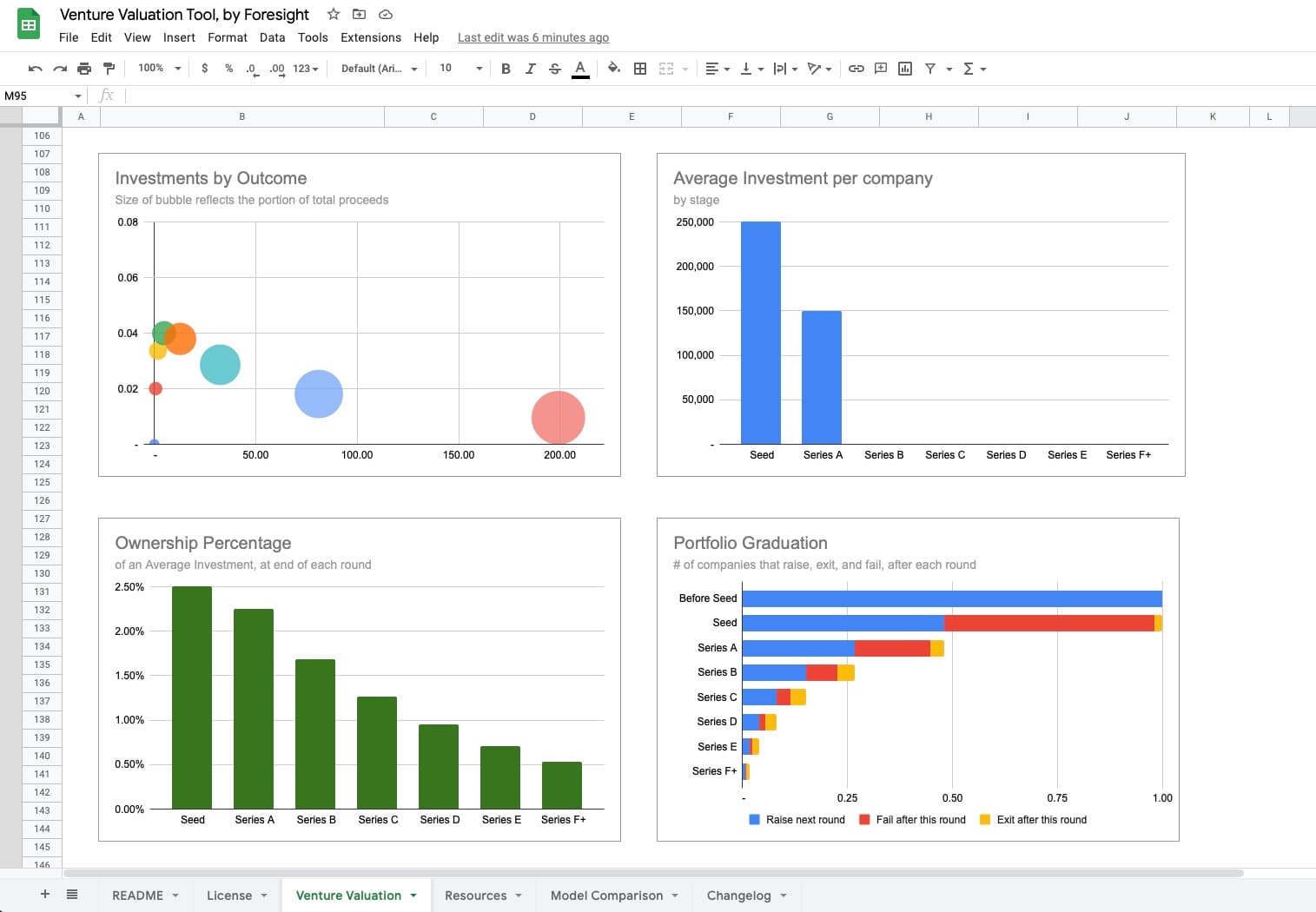 Analyze venture investments before you make them. Model potential rounds (equity, convertible notes, pre-money and post-money SAFEs), dilution, graduation rates, exit valuations, and likelihood of exit at multiple exit prices.